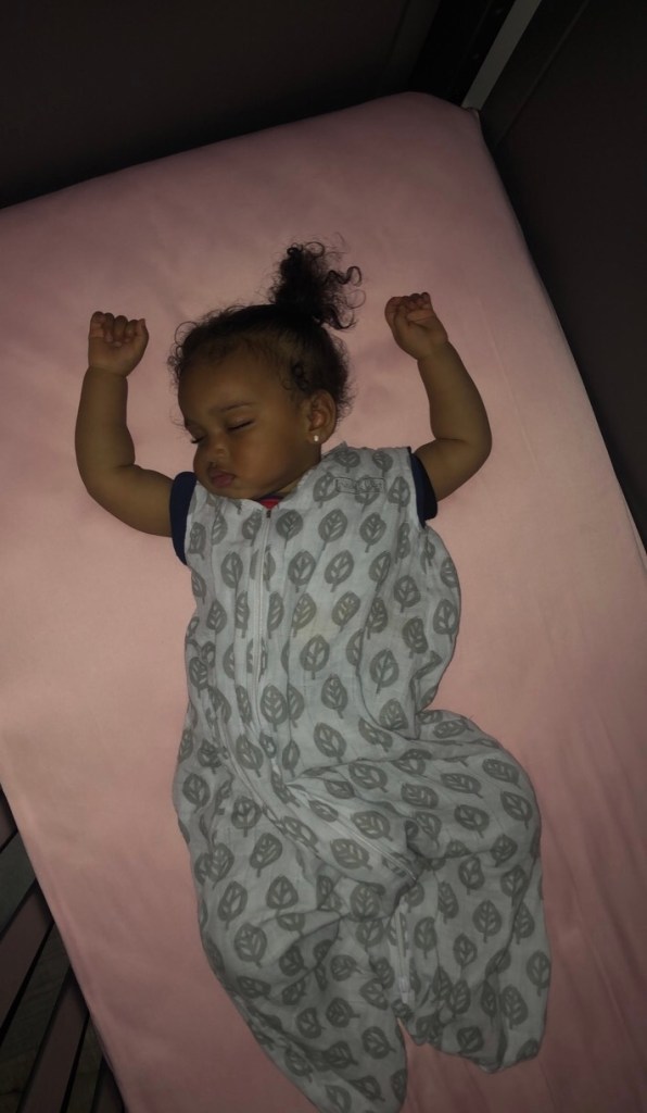 So this is where my story comes into play. Last week, it was just about 1 pm and we had had a long, fun filled morning. Mila was very tired and definitely ready for a nap. She’ll usually let us know when she wants to sleep by walking over to the stairs, pointing up and saying “na…na” (nap). Let’s fast forward to just a few minutes after we made our way up to her room…she’s on the changing table and now comfy in her sleep sack. I pick her up and we put the white noise on and close the curtains. Just as I’m about to turn down the lights and head over to the rocking chair, she points towards her crib…